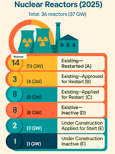 Figure 1. Status of Nuclear Power Plants in Japan (March 14, 2025).