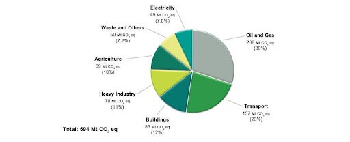 Figure 2-1. Breakdown of Canada’s GHG emissions by economic sector (2023)