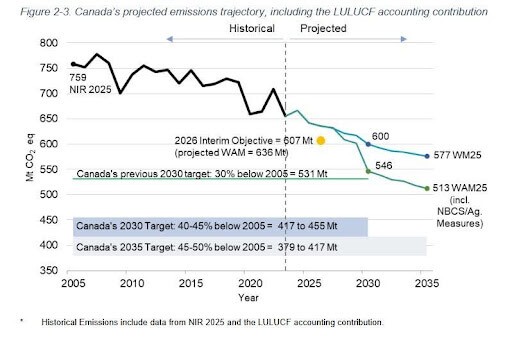 Prime Minister Carney has already stated that Canada will not meet its 2030 or 2035 emissions targets under the existing plan. Canada’s commitment to net-zero by 2050 is codified in law through the Canadian Net-Zero Emissions Accountability Act.