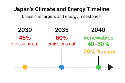 • Japan adopts new carbon reduction targets as it plans to boost nuclear and renewable energy by 2040 (2025). AP News. https://apnews.com/article/japan-climate-energy-decarbonization-targets-nuclear-carbon-7006f2dd241e30a3129a00da5bf707dd